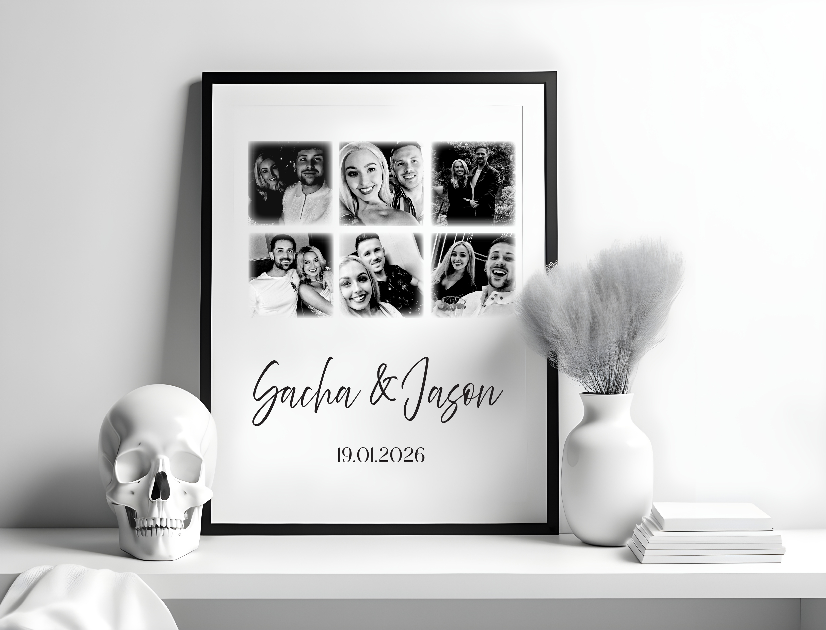At Nicola Luna Design, we transform your cherished memories into sophisticated works of art. Using premium, high-quality glossy card and meticulous printing techniques, each personalized photo collage and illustration is crafted to be a lasting centerpiece in your home. Experience the blend of contemporary editorial style and heartfelt personalization.